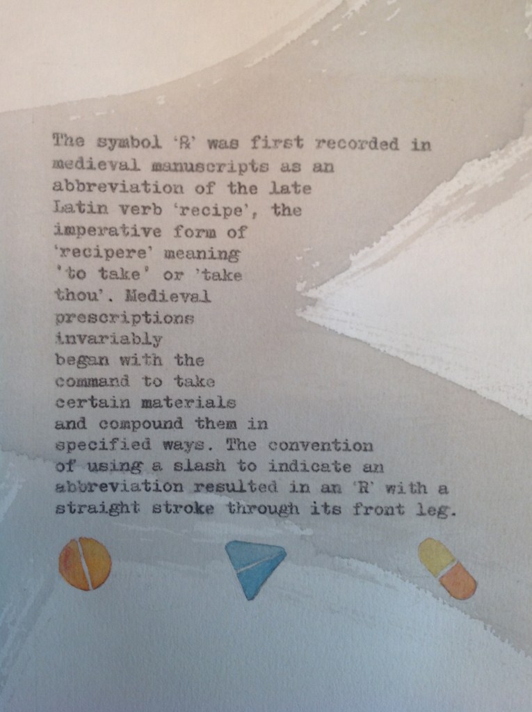 While researching the word ‘recipe’, I became intrigued by its connection to the ‘℞’ prescription symbol.