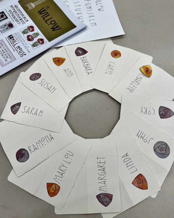 On the weekend, it was my pleasure to share it with participants in a workshop hosted by the Calligraphic Arts Guild of Toronto. We examined type fonts inspired by Mackintosh; practiced the 26 letters and their variations; admired Art Nouveau stained-glass designs; discussed composition, colour mixing, and corrections. A varied curriculum that came out of student questions. Not quite what was planned but meeting the needs of a mix of participants who were either new to hand lettering or preparing for the CAGT’s upcoming annual gallery exhibition. Lots of alphabet practice leading to composition studies of the quotations they were exploring. I can’t wait to see the finished broadsides in the gallery exhibition.